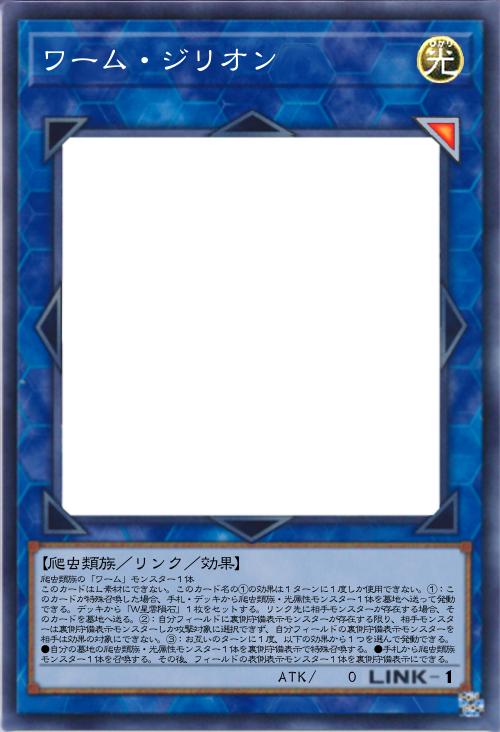 | 爬虫類族の「ワーム」モンスター1体 このカードはL素材にできない。このカード名の①の効果は1ターンに1度しか使用できない。①:このカードが特殊召喚した場合、手札・デッキから爬虫類族・光属性モンスター1体を墓地へ送って発動できる。デッキから「W星雲隕石」1枚をセットする。リンク先に相手モンスターが存在する場合、そのカードを墓地へ送る。②:自分フィールドに裏側守備表示モンスターが存在する限り、相手モンスターは裏側守備表示モンスターしか攻撃対象に選択できず、自分フィールドの裏側守備表示モンスターを相手は効果の対象にできない。③:お互いのターンに1度、以下の効果から1つを選んで発動できる。●自分の墓地の爬虫類族・光属性モンスター1体を裏側守備表示で特殊召喚する。●手札から爬虫類族モンスター1体を召喚する。その後、フィールドの表側表示モンスター1体を裏側守備表示にできる。 | |||