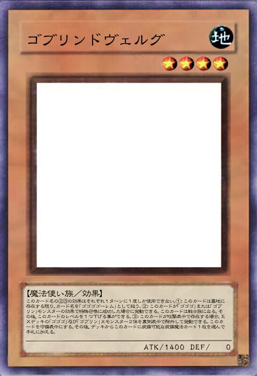 | このカード名の②③の効果はそれぞれ1ターンに1度しか使用できない。①:このカードは墓地に存在する限り、カード名を「ゴゴゴゴーレム」として扱う。②:このカードが「ゴゴゴ」または「ゴブリン」モンスターの効果で特殊召喚に成功した場合に発動できる。このカードは戦士族になる。その後、このカードのレベルを1つ下げる事ができる。③:このカードが攻撃表示で存在する場合、EXデッキの「ゴゴゴ」及び「ゴブリン」Xモンスター2体を裏側表示で除外して発動できる。このカードを守備表示にする。その後、デッキからこのカードに装備可能な装備魔法カード1枚を選んで手札に加える。 | |||