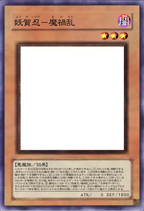 | このカード名の②③の効果はそれぞれ1ターンに1度しか使用できない。①:1ターンに1度、発動できる。相手フィールドにセットされた魔法・罠カード1枚を選んで手札に戻す。この効果の発動に対して相手は魔法・罠カードを発動できない。②:このカードが悪魔族またはデット族XモンスターのX素材となっている状態で、相手がカードの効果を発動した時に発動できる。このカードをX素材として持っているXモンスターを破壊する。その後、相手フィールドのEXデッキから特殊召喚されたモンスター1体を選び、エンドフェイズまで除外できる。③:墓地のこのカードと「妖賀忍-魔禍乱」以外の、「大神官デ・ザード」またはそのカード名が記されたモンスター1体を除外して発動できる。自分の墓地からランク3以下のXモンスター1体を選び、自分フィールドのX素材の無いXモンスター1体の下に重ねてX素材とする。 | |||