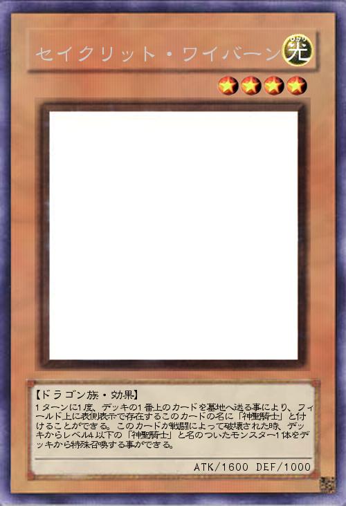 | 1ターンに1度、デッキの1番上のカードを墓地へ送る事により、フィールド上に表側表示で存在するこのカードの名に「神聖騎士」と付けることができる。このカードが戦闘によって破壊された時、デッキからレベル4以下の「神聖騎士」と名のついたモンスター1体をデッキから特殊召喚する事ができる。 | |||