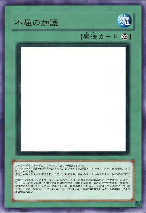 | このカード名のカードは1ターンに1度しか発動できない。 ①このカードの発動時の効果処理として、デッキから天使族ユニオンモンスター1体を手札に加えることができる。 ②自分がモンスターの召喚を行った時に発動できる。手札のユニオンモンスター1体の召喚を行う。 ③自分・相手ターンに1度、フィールドのモンスターの表示形式が効果によって変更された場合、フィールドのモンスター1体を対象に発動できる。対象モンスターの表示形式を変更し、攻撃力・守備力を1000アップする。対象モンスターがユニオンモンスターを装備している場合、さらに次のターン終了時まで、そのモンスターとそのモンスターに装備されているカードは戦闘・効果では破壊されない。 | |||