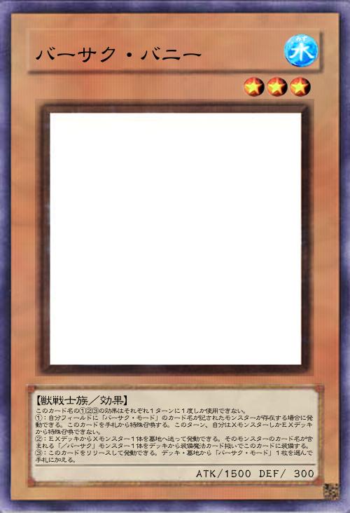 | このカード名の①②③の効果はそれぞれ1ターンに1度しか使用できない。 ①:自分フィールドに「バーサク・モード」のカード名が記されたモンスターが存在する場合に発動できる。このカードを手札から特殊召喚する。このターン、自分はXモンスターしかEXデッキから特殊召喚できない。 ②:EXデッキからXモンスター1体を墓地へ送って発動できる。そのモンスターのカード名が含まれる「/バーサク」モンスター1体をデッキから装備魔法カード扱いでこのカードに装備する。 ③:このカードをリリースして発動できる。デッキ・墓地から「バーサク・モード」1枚を選んで手札に加える。 | |||
