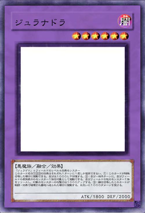 | 「ジュラゲド」+フィールドのレベル4効果モンスター このカード名の①②③の効果はそれぞれ1ターンに1度しか使用できない。①:このカードが特殊召喚した場合に発動できる。自分は1000LP回復する。②:自分・相手ターンに、自分フィールドの表側表示のモンスター1体を対象として発動できる。自分フィールドの他のモンスター1体をリリースし、対象のモンスターの攻撃力は1000アップする。③:融合召喚したこのカードが戦闘・効果で破壊され墓地へ送られた場合に発動する。お互いに1000ダメージを受ける。 | |||