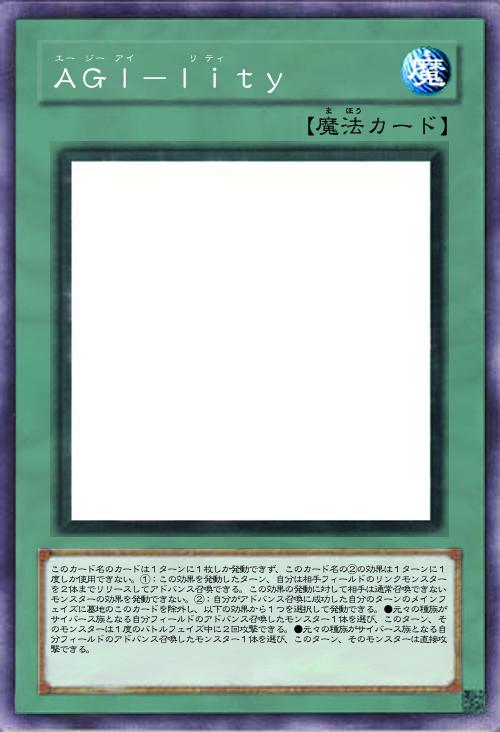 | このカード名のカードは1ターンに1枚しか発動できず、このカード名の②の効果は1ターンに1度しか使用できない。①:この効果を発動したターン、自分は相手フィールドのリンクモンスターを2体までリリースしてアドバンス召喚できる。この効果の発動に対して相手は通常召喚できないモンスターの効果を発動できない。②:自分がアドバンス召喚に成功した自分のターンのメインフェイズに墓地のこのカードを除外し、以下の効果から1つを選択して発動できる。●元々の種族がサイバース族となる自分フィールドのアドバンス召喚したモンスター1体を選び、このターン、そのモンスターは1度のバトルフェイズ中に2回攻撃できる。●元々の種族がサイバース族となる自分フィールドのアドバンス召喚したモンスター1体を選び、このターン、そのモンスターは直接攻撃できる。 | |||