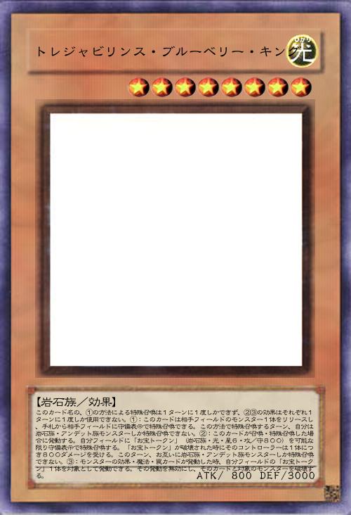 | このカード名の、①の方法による特殊召喚は1ターンに1度しかできず、②③の効果はそれぞれ1ターンに1度しか使用できない。①:このカードは相手フィールドのモンスター1体をリリースし、手札から相手フィールドに守備表示で特殊召喚できる。この方法で特殊召喚するターン、自分は岩石族・アンデット族モンスターしか特殊召喚できない。②:このカードが召喚・特殊召喚した場合に発動する。自分フィールドに「お宝トークン」(岩石族・光・星6・攻/守800)を可能な限り守備表示で特殊召喚する。「お宝トークン」が破壊された時にそのコントローラーは1体につき800ダメージを受ける。このターン、お互いに岩石族・アンデット族モンスターしか特殊召喚できない。③:モンスターの効果・魔法・罠カードが発動した時、自分フィールドの「お宝トークン」1体を対象として発動できる。その発動を無効にし、そのカードと対象のモンスターを破壊する。 | |||