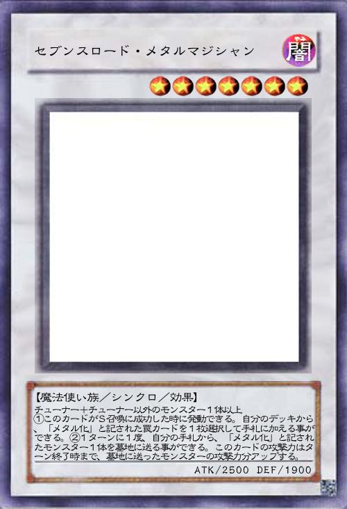 | チューナー+チューナー以外のモンスター1体以上 ①このカードがS召喚に成功した時に発動できる。自分のデッキから、「メタル化」と記された罠カードを1枚選択して手札に加える事ができる。②1ターンに1度、自分の手札から、「メタル化」と記されたモンスター1体を墓地に送る事ができる。このカードの攻撃力はターン終了時まで、墓地に送ったモンスターの攻撃力分アップする。 | |||