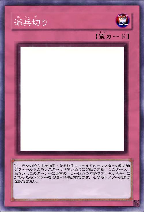 | ①:元々の持ち主が相手となる相手フィールドのモンスターの数が自分フィールドのモンスターより多い場合に発動できる。このターン、お互いはこのターン中に通常のドロー以外の方法でデッキから手札に加わったモンスターを召喚・特殊召喚できず、そのモンスター効果は発動できない。 | |||