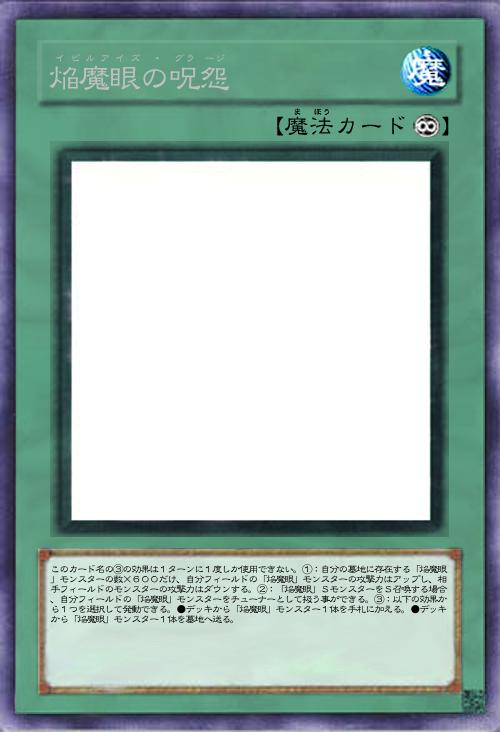 | このカード名の③の効果は1ターンに1度しか使用できない。①:自分フィールドの「焔魔眼」モンスターの攻撃力は自分の墓地に存在する「焔魔眼」モンスターの数×600アップし、相手フィールドのモンスターの攻撃力は同じ数値分ダウンする。②:「焔魔眼」SモンスターをS召喚する場合、自分フィールドの「焔魔眼」モンスターをチューナーとして扱う事ができる。③:以下の効果から1つを選択して発動できる。●デッキから「焔魔眼」モンスター1体を手札に加える。●デッキから「焔魔眼」モンスター1体を墓地へ送る。 | |||