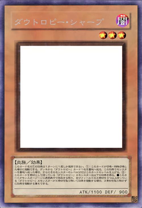 | このカード名の①の効果は1ターンに1度しか使用できない。①:このカードが召喚・特殊召喚した場合に発動できる。デッキから「ダウトロピー」カード1枚を墓地へ送る。この効果でモンスターを墓地へ送った場合、さらにそのモンスターのレベル分だけこのカードのレベルを上げる。②:このカードを素材として持っている「ダウトロピー」Xモンスターは以下の効果を得る。●このカードがモンスターゾーンに表側表示で存在する限り、自分フィールドのX素材を3つ以上持っている「ダウトロピー」XモンスターがX素材を取り除いて効果を発動する場合、X素材を取り除かずに効果を発動する事もできる。 | |||