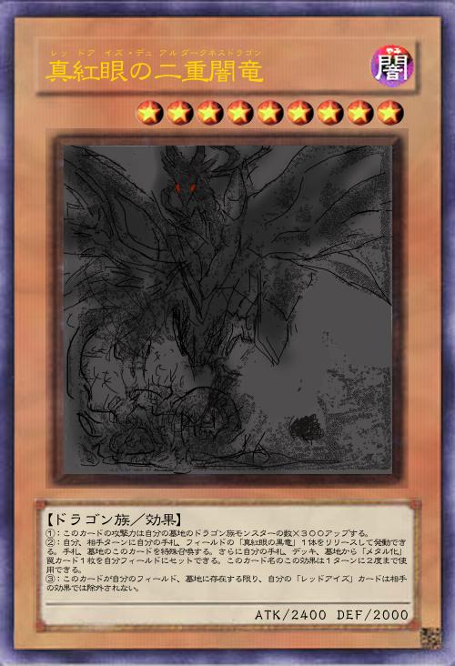 ②:自分の墓地にレベル9の「レッドアイズ」モンスターが存在し相手がカードの効果を発動した場合に発動できる。デッキからドラゴン族モンスター1体を墓地に送り、相手に300ダメージを与える。この効果は1ターンに2度まで使用できる。