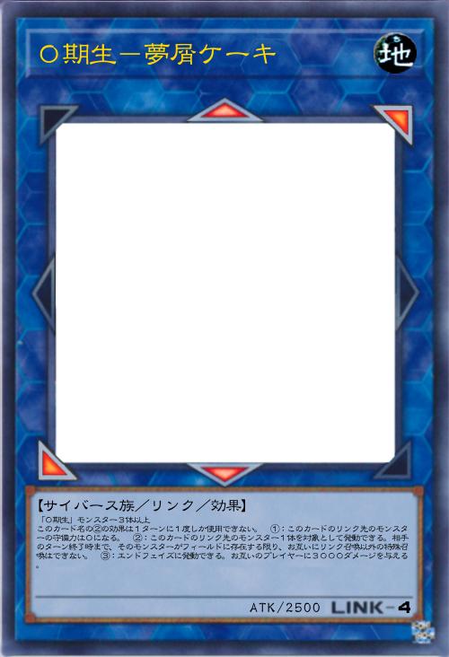 | 「0期生」モンスター3体以上 このカード名の②の効果は1ターンに1度しか使用できない。 ①:このカードのリンク先のモンスターの守備力は0になる。 ②:このカードのリンク先のモンスター1体を対象として発動できる。相手のターン終了時まで、そのモンスターがフィールドに存在する限り、お互いにリンク召喚以外の特殊召喚はできない。 ③:エンドフェイズに発動できる。お互いのプレイヤーに3000ダメージを与える。 | |||