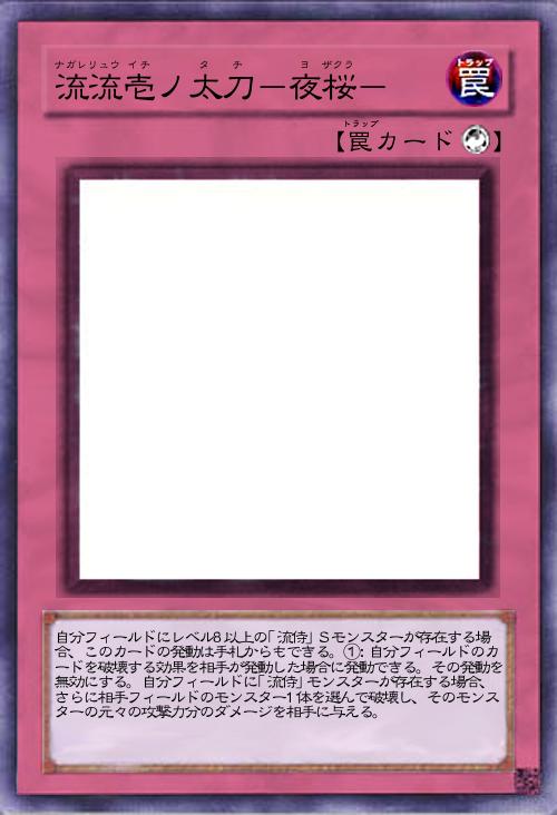 「条件を満たせば手札から使える「流侍」シリーズの罠カードです。破壊して追加効果で特殊召喚してしまうと類似効果のスターライト・ロードの立つ瀬がないので少し工夫しました。どういう強化をすればいい感じのテーマになるかよく分からないのでアドバイスが欲しい所存です」(2024-12-25 13:33)
