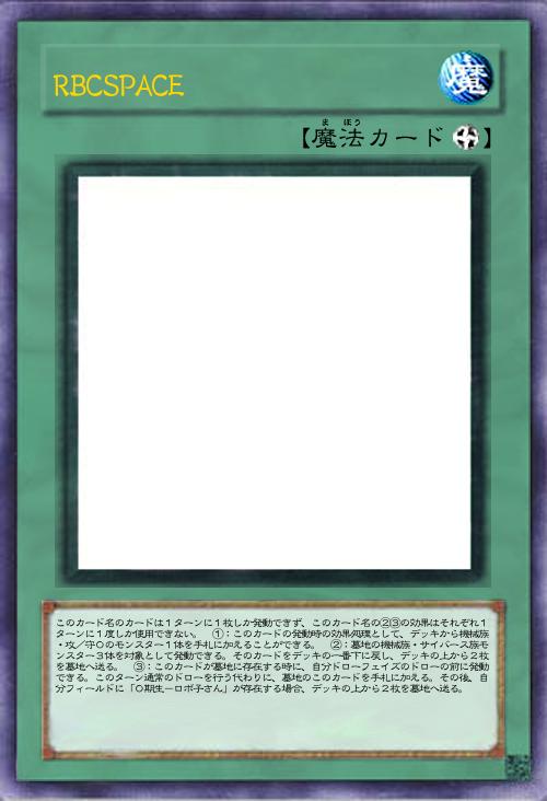 | このカード名のカードは1ターンに1枚しか発動できず、このカード名の②③の効果はそれぞれ1ターンに1度しか使用できない。 ①:このカードの発動時の効果処理として、デッキから機械族・攻/守0のモンスター1体を手札に加えることができる。 ②:墓地の機械族・サイバース族モンスター3体を対象として発動できる。そのカードをデッキの一番下に戻し、デッキの上から2枚を墓地へ送る。 ③:このカードが墓地に存在する時に、自分ドローフェイズのドローの前に発動できる。このターン通常のドローを行う代わりに、墓地のこのカードを手札に加える。その後、自分フィールドに「0期生-ロボ子さん」が存在する場合、デッキの上から2枚を墓地へ送る。 | |||