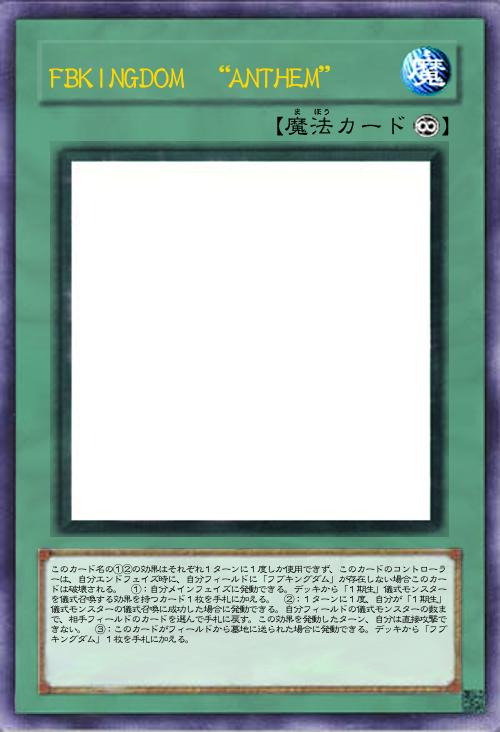 | このカード名の①②の効果はそれぞれ1ターンに1度しか使用できず、このカードのコントローラーは、自分エンドフェイズ時に、自分フィールドに「フブキングダム」が存在しない場合このカードは破壊される。 ①:自分メインフェイズに発動できる。デッキから「1期生」儀式モンスターを儀式召喚する効果を持つカード1枚を手札に加える。 ②:1ターンに1度、自分が「1期生」儀式モンスターの儀式召喚に成功した場合に発動できる。自分フィールドの儀式モンスターの数まで、相手フィールドのカードを選んで手札に戻す。この効果を発動したターン、自分は直接攻撃できない。 ③:このカードがフィールドから墓地に送られた場合に発動できる。デッキから「フブキングダム」1枚を手札に加える。 | |||