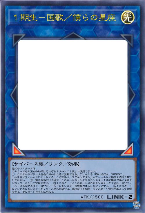 | 儀式モンスター2体 このカード名の①④の効果はそれぞれ1ターンに1度しか使用できない。 ①:このカードがリンク召喚に成功した時に発動できる。デッキから「FBKINGDOM “ANTHEM”」1枚を自分フィールドにセットする。この効果は「フブキングダム」がフィールドに存在する限り無効化されない。 ②:儀式召喚を行う場合、このカードのリンク先のモンスター1体で儀式召喚に必要な分のリリースとして使用できる。 ③:このカードとこのカード以外のモンスターが1体以上自分フィールドに存在する限り、自分フィールドのモンスターの攻撃力は500アップする。 ④:このカードのリンク先のモンスターがリリースされた場合に、墓地の「1期生」モンスター1体を対象として発動できる。そのカードを手札に加える。 | |||
