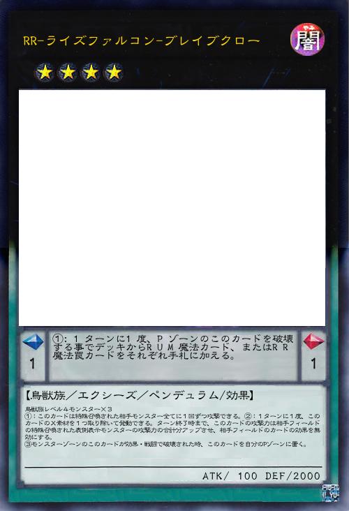 | ①:1ターンに1度、Pゾーンのこのカードを破壊する事でデッキからRUM魔法カード、またはRR魔法罠カードをそれぞれ手札に加える。 | |||