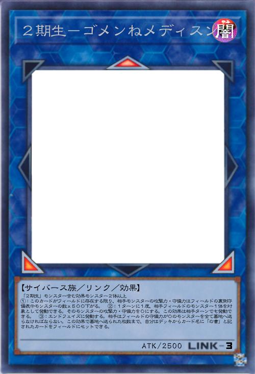 | 「2期生」モンスター含む効果モンスター2体以上 ①:このカードがフィールドに存在する限り、相手モンスターの攻撃力・守備力はフィールドの裏側守備表示モンスターの数x500下がる。 ②:1ターンに1度、相手フィールドのモンスター1体を対象として発動できる。そのモンスターの攻撃力・守備力を0にする。この効果は相手ターンでも発動できる。 ③:エンドフェイズに発動する。相手はフィールドの守備力が0のモンスターを全て墓地へ送らなければならない。この効果で墓地へ送られた枚数まで、自分はデッキからカード名に「の書」と記されたカードをフィールドにセットできる。 | |||