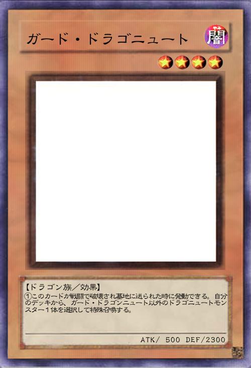| ①このカードが戦闘で破壊され墓地に送られた時に発動できる。自分のデッキから、ガード・ドラゴンニュート以外のドラゴニュートモンスター1体を選択して特殊召喚する。 | |||