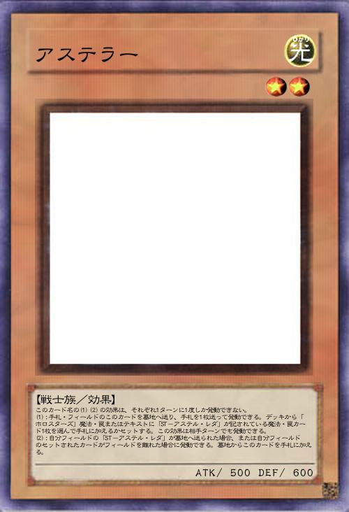 | このカード名の(1)(2)の効果は、それぞれ1ターンに1度しか発動できない。 (1):手札・フィールドのこのカードを墓地へ送り、手札を1枚送って発動できる。デッキから「ホロスターズ」魔法・罠またはテキストに「ST-アステル・レダ」が記されている魔法・罠カード1枚を選んで手札に加えるかセットする。この効果は相手ターンでも発動できる。 (2):自分フィールドの「ST-アステル・レダ」が墓地へ送られた場合、または自分フィールドのセットされたカードがフィールドを離れた場合に発動できる。墓地からこのカードを手札に加える。 | |||