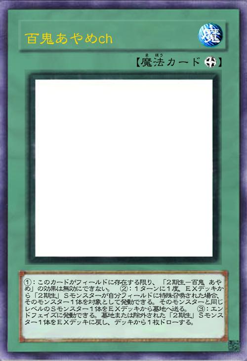 | ①:このカードがフィールドに存在する限り、「2期生-百鬼 あやめ」の効果は無効にできない。 ②:1ターンに1度、EXデッキから「2期生」Sモンスターが自分フィールドに特殊召喚された場合、そのモンスター1体を対象として発動できる。そのモンスターと同じレベルのSモンスター1体をEXデッキから墓地へ送る。 ③:エンドフェイズに発動できる。墓地または除外された「2期生」Sモンスター1体をEXデッキに戻し、デッキから1枚ドローする。 | |||