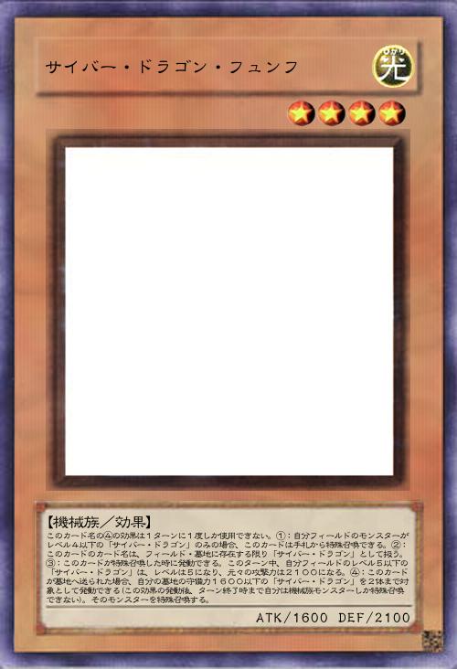 | このカード名の④の効果は1ターンに1度しか使用できない。①:自分フィールドのモンスターがレベル4以下の「サイバー・ドラゴン」のみの場合、このカードは手札から特殊召喚できる。②:このカードのカード名は、フィールド・墓地に存在する限り「サイバー・ドラゴン」として扱う。③:このカードが特殊召喚した時に発動できる。このターン中、自分フィールドのレベル5以下の「サイバー・ドラゴン」は、レベルは5になり、元々の攻撃力は2100になる。④:このカードが墓地へ送られた場合、自分の墓地の守備力1600以下の「サイバー・ドラゴン」を2体まで対象として発動できる(この効果の発動後、ターン終了時まで自分は機械族モンスターしか特殊召喚できない)。そのモンスターを特殊召喚する。 | |||