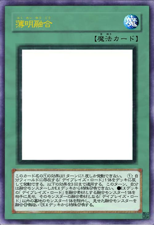 | このカード名の①の効果は1ターンに1度しか発動できない。 ①:自分フィールドに存在する「デイブレイズ・ロード」1体をデッキに戻して発動できる。以下の効果を3回まで適用する。このターン、自分は融合モンスターしかEXデッキから特殊召喚できない。●EXデッキの「デイブレイズ・ロード」を融合素材とする融合モンスター1体を相手に見せ、そのモンスターの融合素材となる「デイブレイズ・ロード」以外の墓地のモンスター1体を除外し、見せた融合モンスターを融合召喚扱いでEXデッキから特殊召喚する。 | |||
