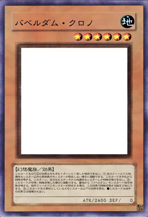 | このカード名の①②の効果はそれぞれ1ターンに1度しか使用できない。①:自分フィールドに地属性モンスター以外の表側表示モンスターが存在しない場合に発動できる。このカードを手札から特殊召喚する。このターン、自分はEXデッキから地属性モンスターしか特殊召喚できない。②:このカードが召喚・特殊召喚した場合に発動できる。墓地から「バベルダム」モンスター1体を特殊召喚する。相手フィールドにモンスターが存在する場合、この効果で特殊召喚する数を2体にできる。③:このカードをX素材としているXモンスターは以下の効果を得る。●このカードは相手の効果では破壊されない。 | |||