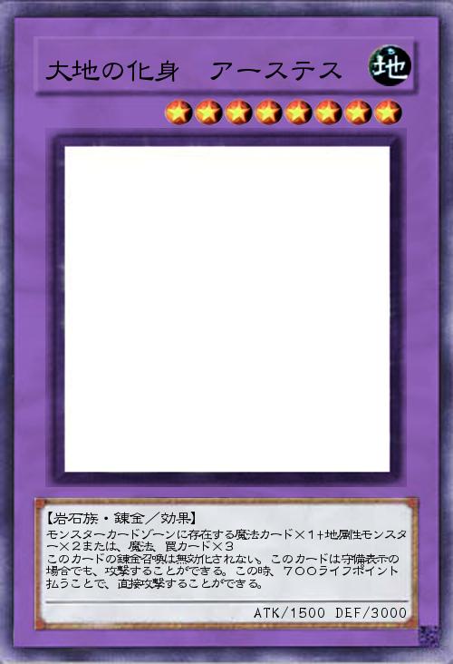 モンスターカードゾーンに存在する魔法カード×1+地属性モンスター×2または、魔法、罠カード×3 このカードの錬金召喚は無効化されない。このカードは守備表示の場合でも、攻撃することができる。この時、700ライフポイント払うことで、直接攻撃することができる。 |