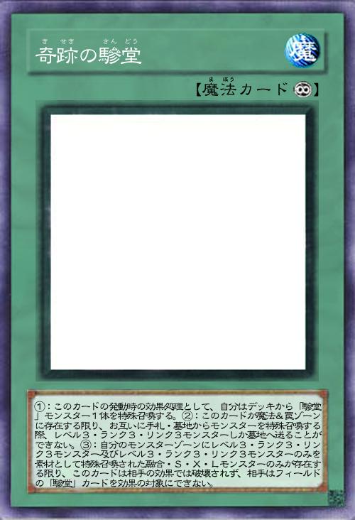 | ①:このカードの発動時の効果処理として、自分はデッキから「驂堂」モンスター1体を特殊召喚する。②:このカードが魔法&罠ゾーンに存在する限り、お互いに手札・墓地からモンスターを特殊召喚する際、レベル3・ランク3・リンク3モンスターしか墓地へ送ることができない。③:自分のモンスターゾーンにレベル3・ランク3・リンク3モンスター及びレベル3・ランク3・リンク3モンスターのみを素材として特殊召喚された融合・S・X・Lモンスターのみが存在する限り、このカードは相手の効果では破壊されず、相手はフィールドの「驂堂」カードを効果の対象にできない。 | |||