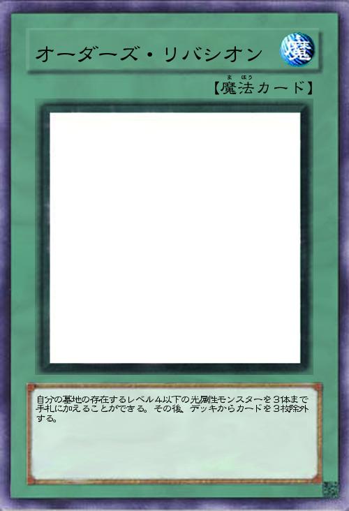 | 自分の墓地の存在するレベル4以下の光属性モンスターを3体まで手札に加えることができる。その後、デッキからカードを3枚除外する。 | |||