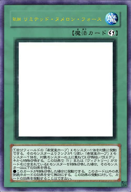 | ①自分フィールドの「希望皇ホープ」Xモンスター1体を対象に発動できる。そのモンスターよりランクが1つ高い「希望皇ホープ」Xモンスター1体を、対象モンスターの上に重ねてX召喚扱いでEXデッキから特殊召喚する。この効果で「V」または「ヴィクトリー」がカード名に含まれているXモンスターを特殊召喚した場合、そのモンスターは以下の効果を得る。 ●このカードが特殊召喚した場合に発動できる。このカード以外の表側表示カードの効果を全て無効にする。この効果の発動に対して、カードの効果を発動することはできない。 | |||