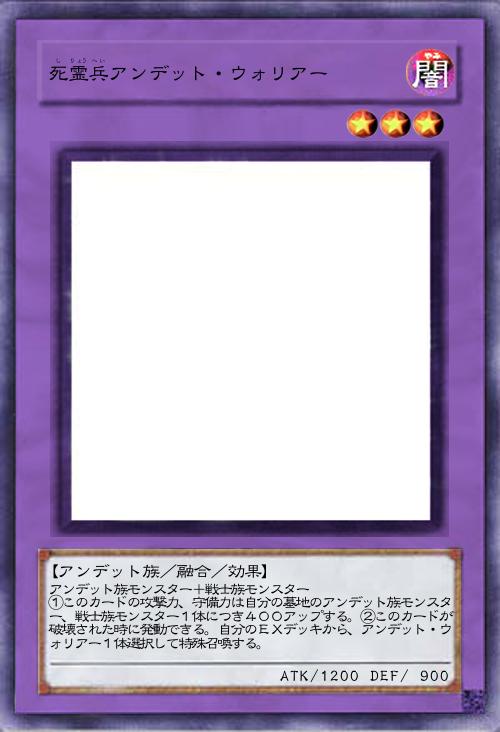 | アンデット族モンスター+戦士族モンスター ①このカードの攻撃力、守備力は自分の墓地のアンデット族モンスター、戦士族モンスター1体につき400アップする。②このカードが破壊された時に発動できる。自分のEXデッキから、アンデット・ウォリアー1体選択して特殊召喚する。 | |||