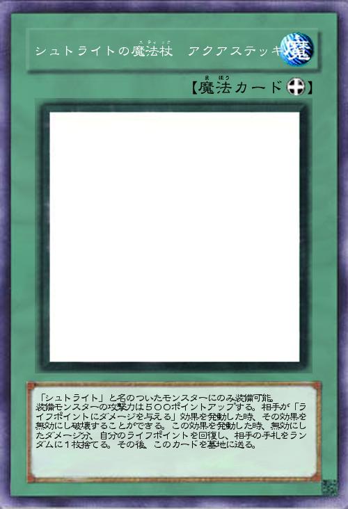 「シュトライト」と名のついたモンスターにのみ装備可能。 装備モンスターの攻撃力は500ポイントアップする。相手が「ライフポイントにダメージを与える」効果を発動した時、その効果を無効にし破壊することができる。この効果を発動した時、無効にしたダメージ分、自分のライフポイントを回復し、相手の手札をランダムに1枚捨てる。その後、このカードを墓地に送る。 |