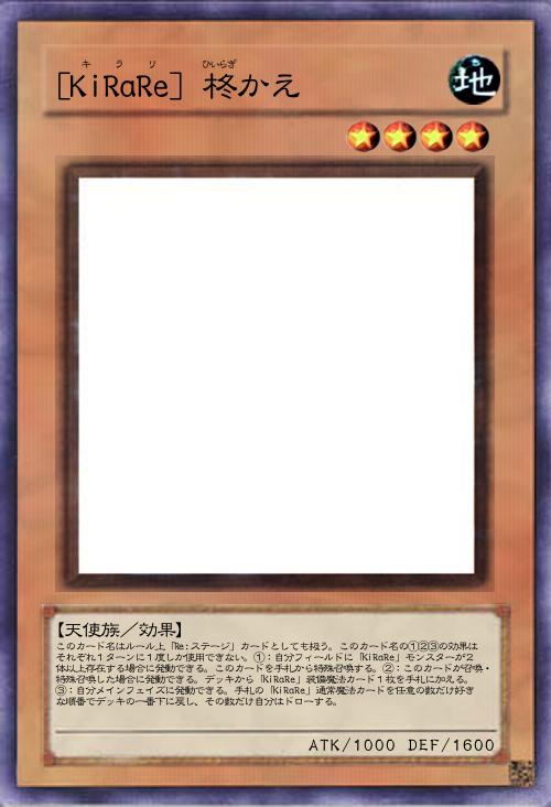 | このカード名はルール上「Re:ステージ」カードとしても扱う。このカード名の①②③の効果はそれぞれ1ターンに1度しか使用できない。①:自分フィールドに「KiRaRe」モンスターが2体以上存在する場合に発動できる。このカードを手札から特殊召喚する。②:このカードが召喚・特殊召喚した場合に発動できる。デッキから「KiRaRe」装備魔法カード1枚を手札に加える。③:自分メインフェイズに発動できる。手札の「KiRaRe」通常魔法カードを任意の数だけ好きな順番でデッキの一番下に戻し、その数だけ自分はドローする。 | |||