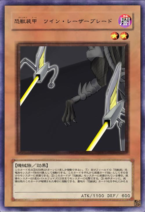 | このカード名の③の効果は1ターンに1度しか発動できない。①: 自分フィールドの「恐獣装」恐竜族モンスター1体を対象として発動できる。このカードを手札から装備カード扱いとしてその自分のモンスターに装備できる。②:このカードが「恐獣装」モンスターに装備されている場合、装備モンスターは1度のバトルフェイズに2回までモンスターに攻撃できる。③:相手ターンに、装備状態のこのカードが破壊された場合に発動できる。墓地の「恐獣装」カード1枚を手札に加える。 | |||