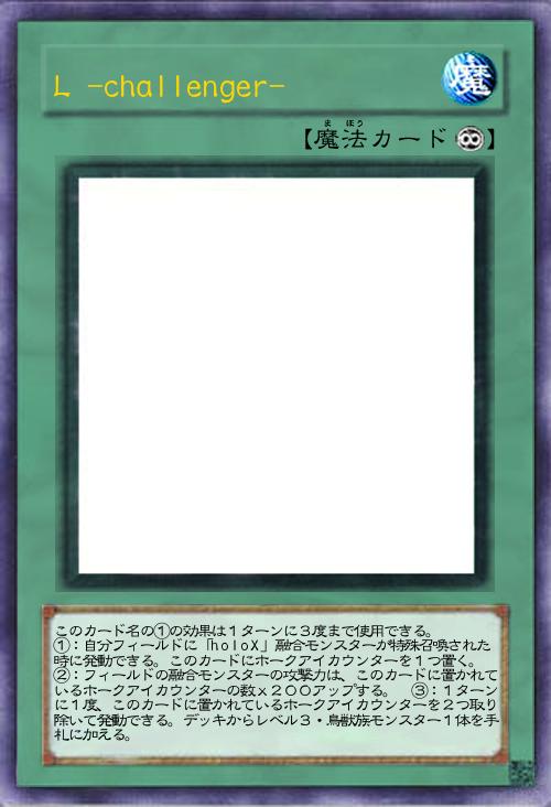 | このカード名の①の効果は1ターンに3度まで使用できる。 ①:自分フィールドに「holoX」融合モンスターが特殊召喚された時に発動できる。このカードにホークアイカウンターを1つ置く。 ②:フィールドの融合モンスターの攻撃力は、このカードに置かれているホークアイカウンターの数x200アップする。 ③:1ターンに1度、このカードに置かれているホークアイカウンターを2つ取り除いて発動できる。デッキからレベル3・鳥獣族モンスター1体を手札に加える。 | |||