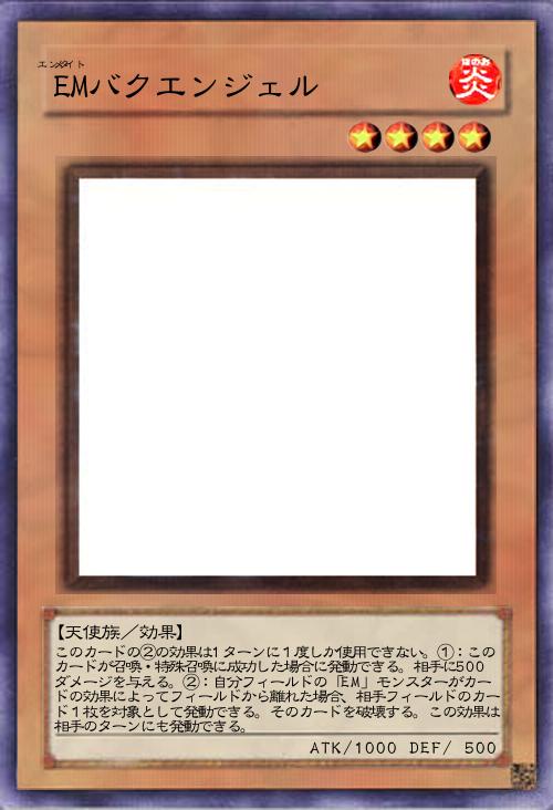 | このカードの②の効果は1ターンに1度しか使用できない。①:このカードが召喚・特殊召喚に成功した場合に発動できる。相手に500ダメージを与える。②:自分フィールドの「EM」モンスターがカードの効果によってフィールドから離れた場合、相手フィールドのカード1枚を対象として発動できる。そのカードを破壊する。この効果は相手のターンにも発動できる。 | |||