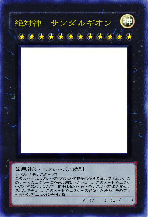 レベル12モンスター×3 このカードはエクシーズ召喚以外で特殊召喚する事はできない。このカードのエクシーズ召喚は無効化されない。このカードをエクシーズ召喚に成功した時、相手は魔法・罠・モンスター効果を発動する事はできない。このカードをエクシーズ召喚した場合、そのプレイヤーはデュエルに勝利する。 |