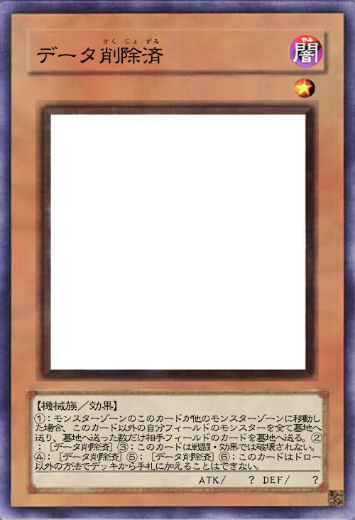 | ①:モンスターゾーンのこのカードが他のモンスターゾーンに移動した場合、このカード以外の自分フィールドのモンスターを全て墓地へ送り、墓地へ送った数だけ相手フィールドのカードを墓地へ送る。②:[データ削除済]③:このカードは戦闘・効果では破壊されない。④:[データ削除済]⑤:[データ削除済]⑥:このカードはドロー以外の方法でデッキから手札に加えることはできない。 | |||