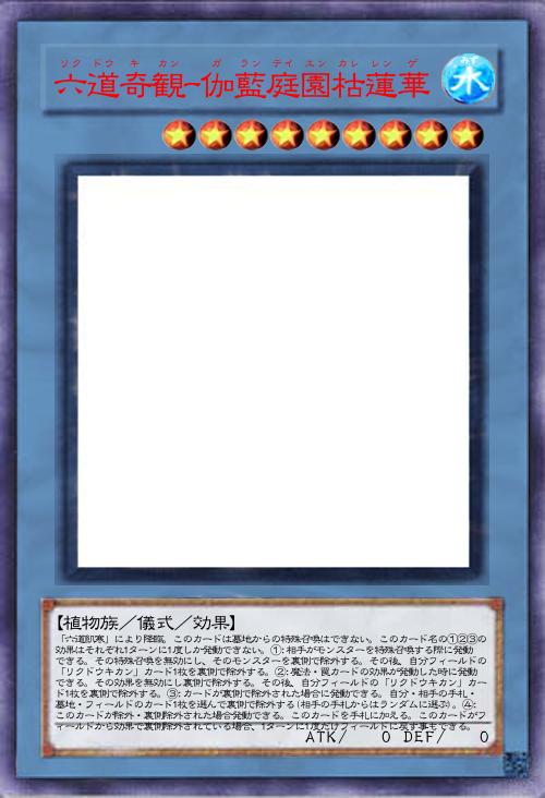 「「リクドウキカン」テーマの3枚目かつ初のモンスターカードです。特殊召喚モンスターは「六道奇観」と書きます。