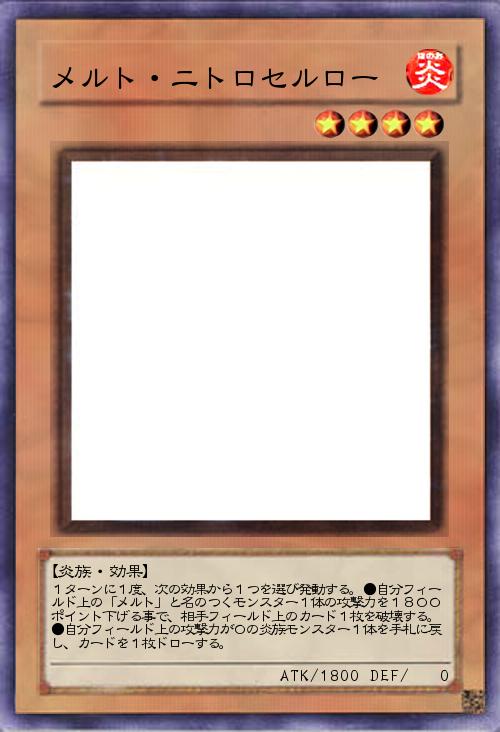 「昼・・・寝・・・?メルト・ボムも前半の効果の対象になれますね。となると、下級メルトは攻撃力高めのカードが多いのでしょうか。なるべくこのカード以外の攻撃力を下げて破壊効果を使いたいところです(`・ω・´)」(2012-08-25 06:04)