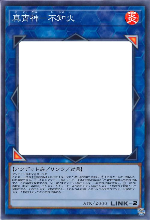 | アンデット族モンスター×2 このカード名の①②の効果はそれぞれ1ターンに1度しか使用できない。①:このカードがL召喚した時に発動できる。デッキからアンデット族チューナー1体を効果を無効にして表側守備表示で特殊召喚する。この効果を発動するターン、自分はアンデット族モンスターしか特殊召喚できない。②:自分の墓地の「妖刀-不知火」モンスターとチューナー以外のアンデット族モンスター1体ずつを対象として発動できる。そのモンスター2体を除外し、そのレベルの合計と同じレベルを持つアンデット族Sモンスター1体をEXデッキから特殊召喚する。 | |||