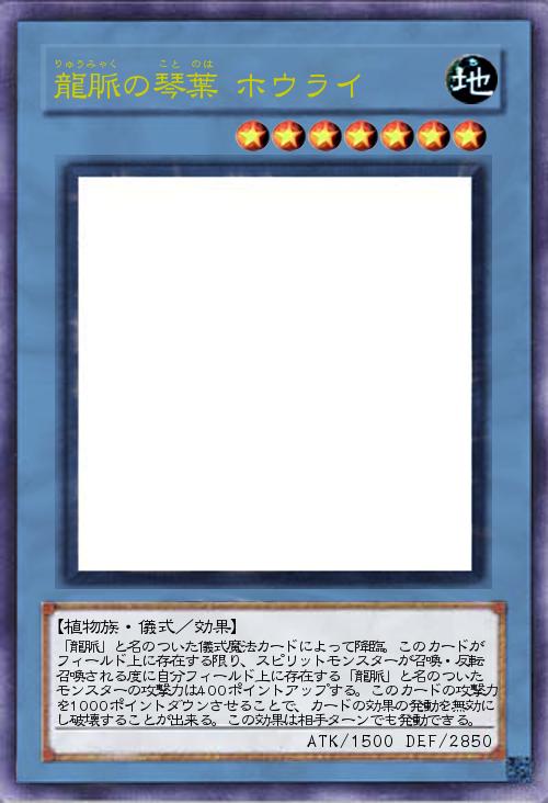 | 「龍脈」と名のついた儀式魔法カードによって降臨。このカードがフィールド上に存在する限り、スピリットモンスターが召喚・反転召喚される度に自分フィールド上に存在する「龍脈」と名のついたモンスターの攻撃力は400ポイントアップする。このカードの攻撃力を1000ポイントダウンさせることで、カードの効果の発動を無効にし破壊することが出来る。この効果は相手ターンでも発動できる。 | |||