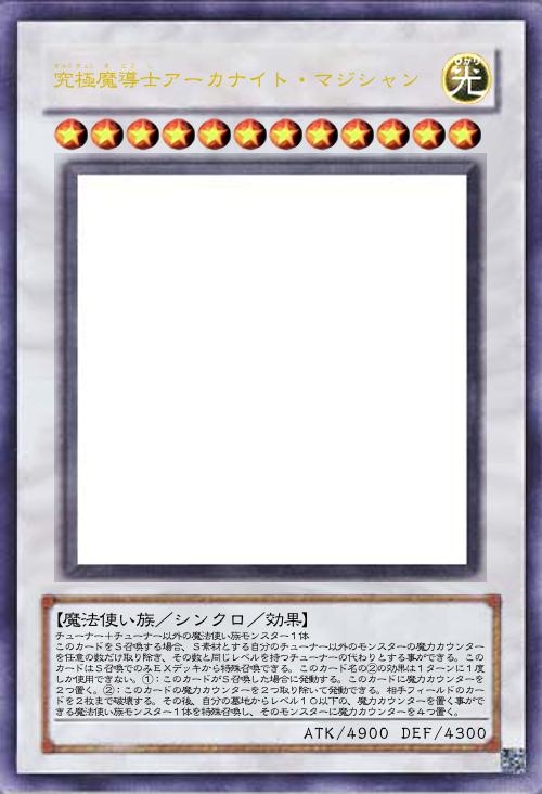 | チューナー+チューナー以外の魔法使い族モンスター1体 このカードをS召喚する場合、S素材とする自分のチューナー以外のモンスターの魔力カウンターを任意の数だけ取り除き、その数と同じレベルを持つチューナーの代わりとする事ができる。このカードはS召喚でのみEXデッキから特殊召喚できる。このカード名の②の効果は1ターンに1度しか使用できない。①:このカードがS召喚した場合に発動する。このカードに魔力カウンターを2つ置く。②:このカードの魔力カウンターを2つ取り除いて発動できる。相手フィールドのカードを2枚まで破壊する。その後、自分の墓地からレベル10以下の、魔力カウンターを置く事ができる魔法使い族モンスター1体を特殊召喚し、そのモンスターに魔力カウンターを4つ置く。 | |||