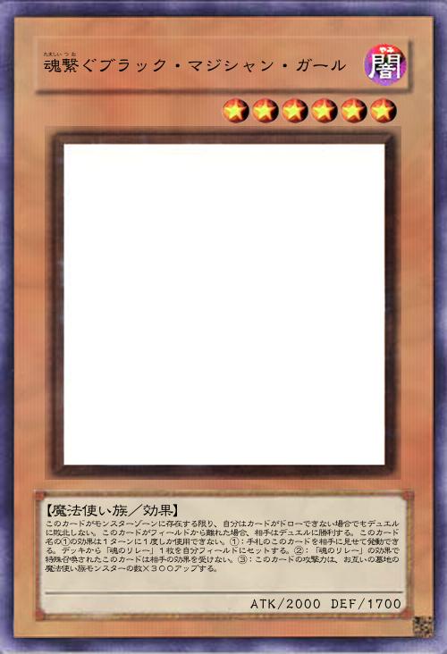 | このカードがモンスターゾーンに存在する限り、自分はカードがドローできない場合でもデュエルに敗北しない。このカードがフィールドから離れた場合、相手はデュエルに勝利する。このカード名の①の効果は1ターンに1度しか使用できない。①:手札のこのカードを相手に見せて発動できる。デッキから「魂のリレー」1枚を自分フィールドにセットする。②:「魂のリレー」の効果で特殊召喚されたこのカードは相手の効果を受けない。③:このカードの攻撃力は、お互いの墓地の魔法使い族モンスターの数×300アップする。 | |||
