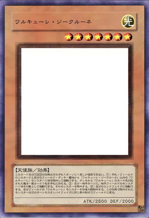 | このカード名の①②③の効果はそれぞれ1ターンに1度しか使用できない。①:手札・フィールドのこのカードと自分のフィールド・デッキ・墓地から「ワルキューレ・ジークルーネ」以外の「ワルキューレ」モンスター1体を除外して発動できる。デッキから「ワルキューレ」のカード名が記された魔法・罠カード1枚を手札に加える。②:自分・相手ターンに、相手フィールドのモンスター1体を対象として発動できる。そのモンスターを除外する。③:自分のエンドフェイズに発動できる。自分フィールドの「ワルキューレ」モンスターを任意の数除外する。この効果で除外されたモンスターは次のターンのスタンバイフェイズに同じ表示形式でフィールドに戻る。 | |||
