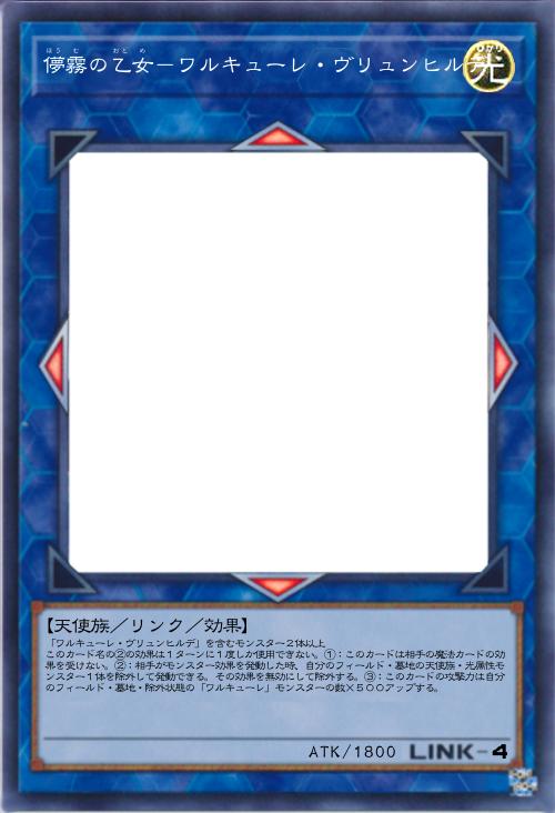 | 「ワルキューレ・ヴリュンヒルデ」を含むモンスター2体以上 このカード名の②の効果は1ターンに1度しか使用できない。①:このカードは相手の魔法カードの効果を受けない。②:相手がモンスター効果を発動した時、自分のフィールド・墓地の天使族・光属性モンスター1体を除外して発動できる。その効果を無効にして除外する。③:このカードの攻撃力は自分のフィールド・墓地・除外状態の「ワルキューレ」モンスターの数×500アップする。 | |||