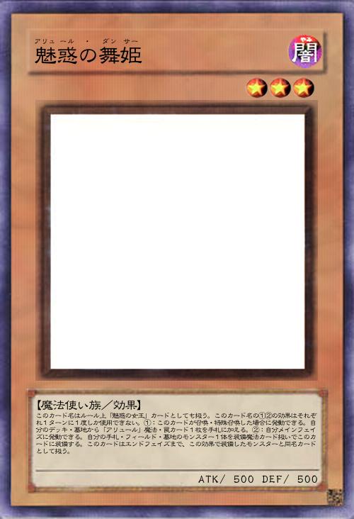 | このカード名はルール上「魅惑の女王」カードとしても扱う。このカード名の①②の効果はそれぞれ1ターンに1度しか使用できない。①:このカードが召喚・特殊召喚した場合に発動できる。自分のデッキ・墓地から「アリュール」魔法・罠カード1枚を手札に加える。②:自分メインフェイズに発動できる。自分の手札・フィールド・墓地のモンスター1体を装備魔法カード扱いでこのカードに装備する。このカードはエンドフェイズまで、この効果で装備したモンスターと同名カードとして扱う。 | |||