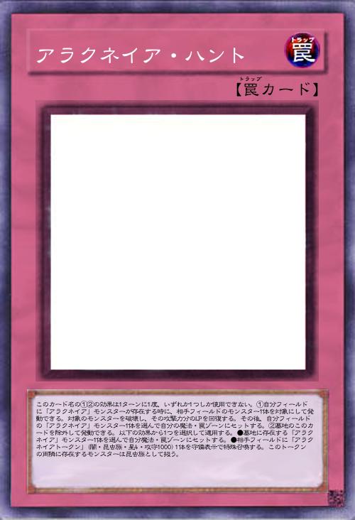 | このカード名の①②の効果は1ターンに1度、いずれか1つしか使用できない。①自分フィールドに「アラクネイア」モンスターが存在する時に、相手フィールドのモンスター1体を対象にして発動できる。対象のモンスターを破壊し、その攻撃力分のLPを回復する。その後、自分フィールドの「アラクネイア」モンスター1体を選んで自分の魔法・罠ゾーンにセットする。②墓地のこのカードを除外して発動できる。以下の効果から1つを選択して適用する。●墓地に存在する「アラクネイア」モンスター1体を選んで自分魔法・罠ゾーンにセットする。●相手フィールドに「アラクネイアトークン」(闇・昆虫族・星4・攻守1000)1体を守備表示で特殊召喚する。このトークンの両隣に存在するモンスターは昆虫族として扱う。 | |||