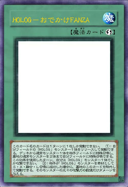 | このカード名のカードは1ターンに1枚しか発動できない。 ①:自分フィールドの「HOLOG」モンスター1体をリリースして発動できる。デッキから通常モンスター1体を相手フィールドに特殊召喚し、墓地の通常モンスターを2体まで自分フィールドに特殊召喚できる。この効果を使用したターン、自分は「HOLOG」モンスター1体でしか攻撃できない。 ②:相手が「HOLOG」モンスターを素材としてS・X・融合・L召喚に成功した場合に、墓地のこのカードを除外して発動できる。そのモンスターの元々の攻撃力の数値だけダメージを与える。 | |||